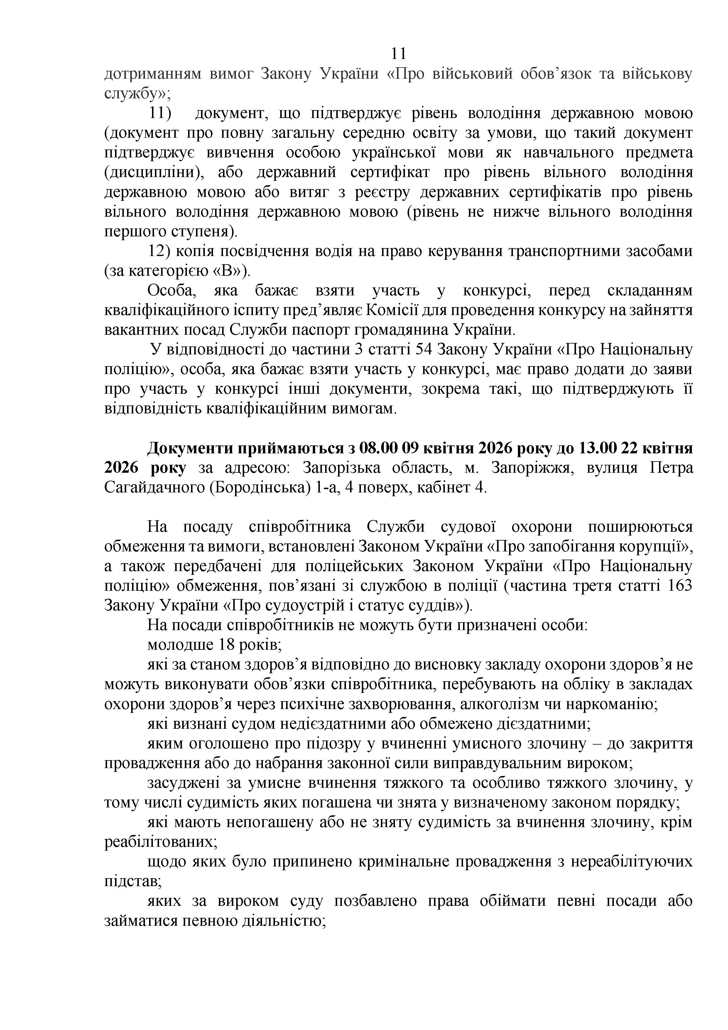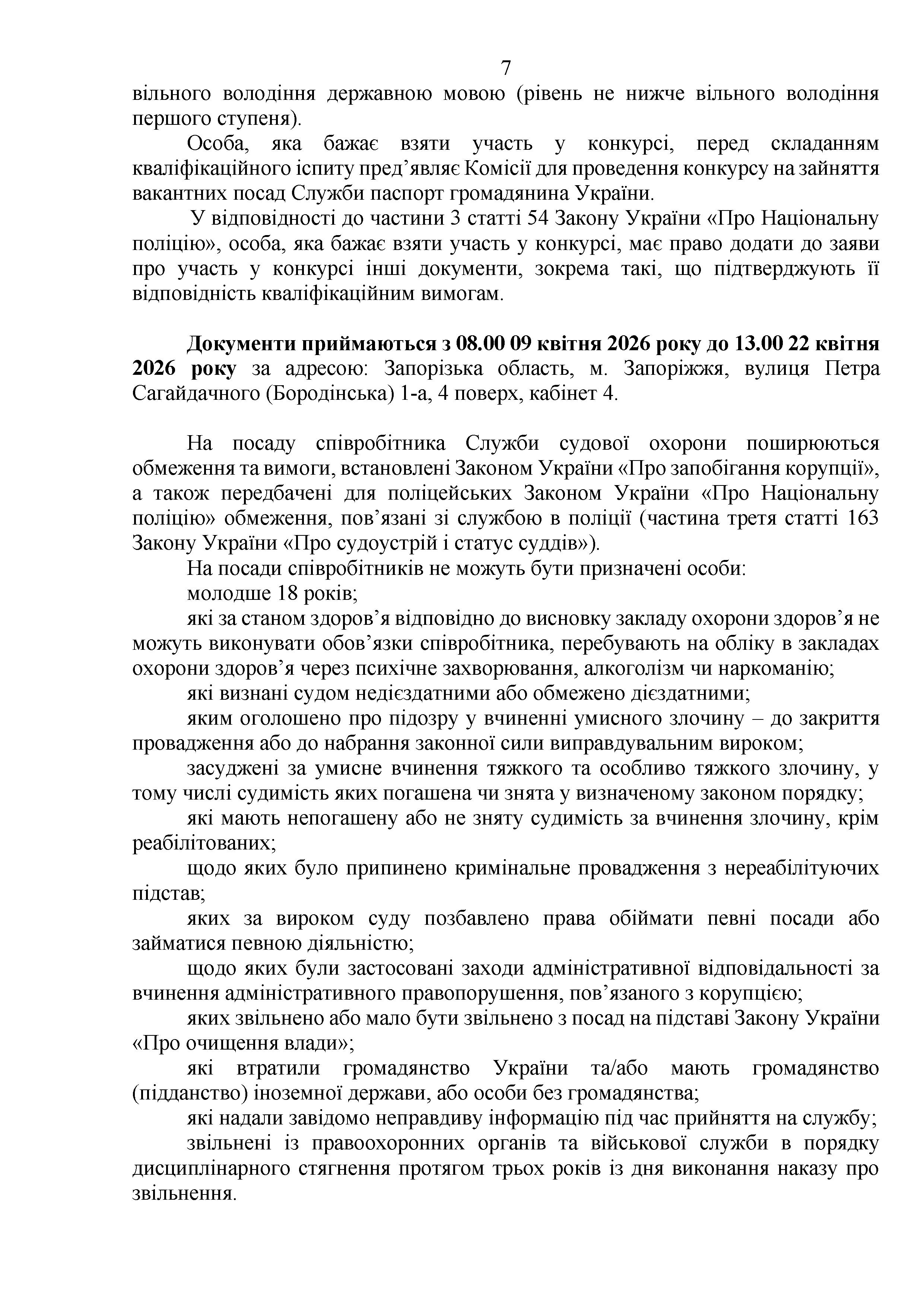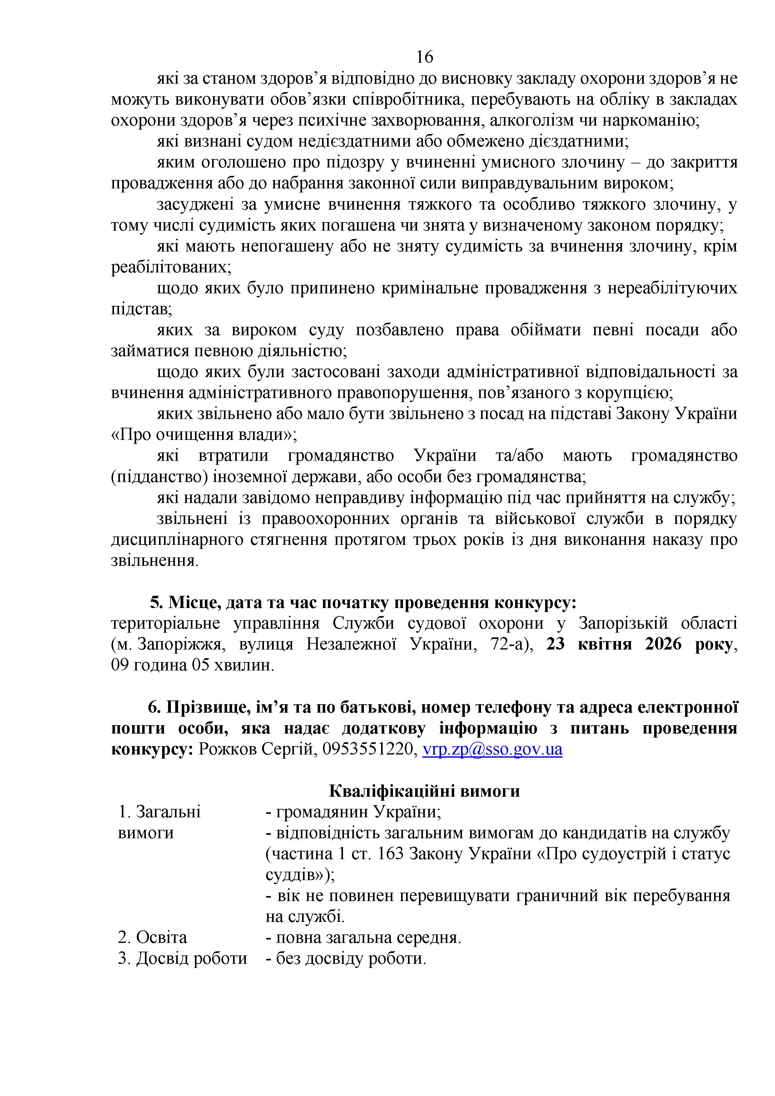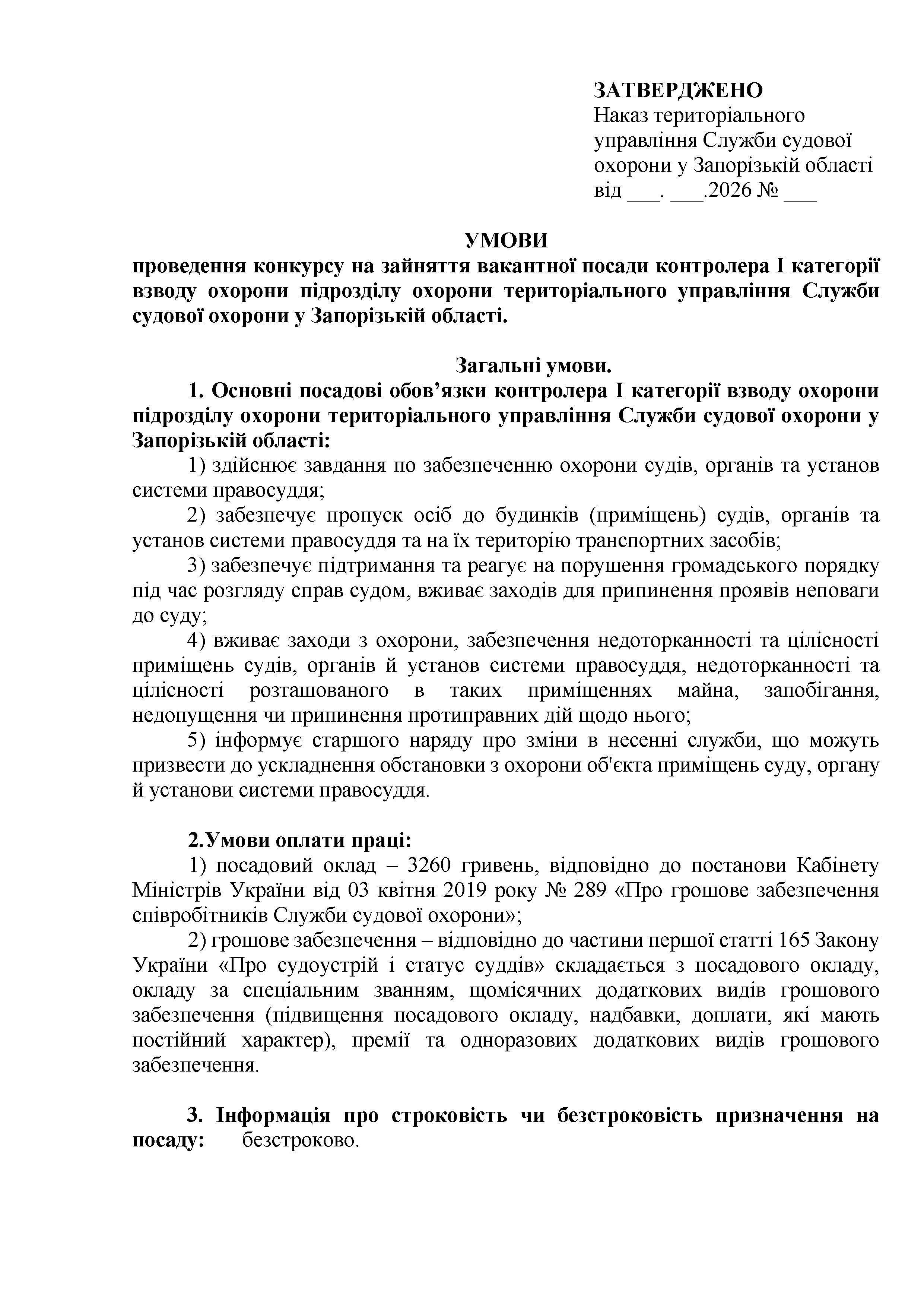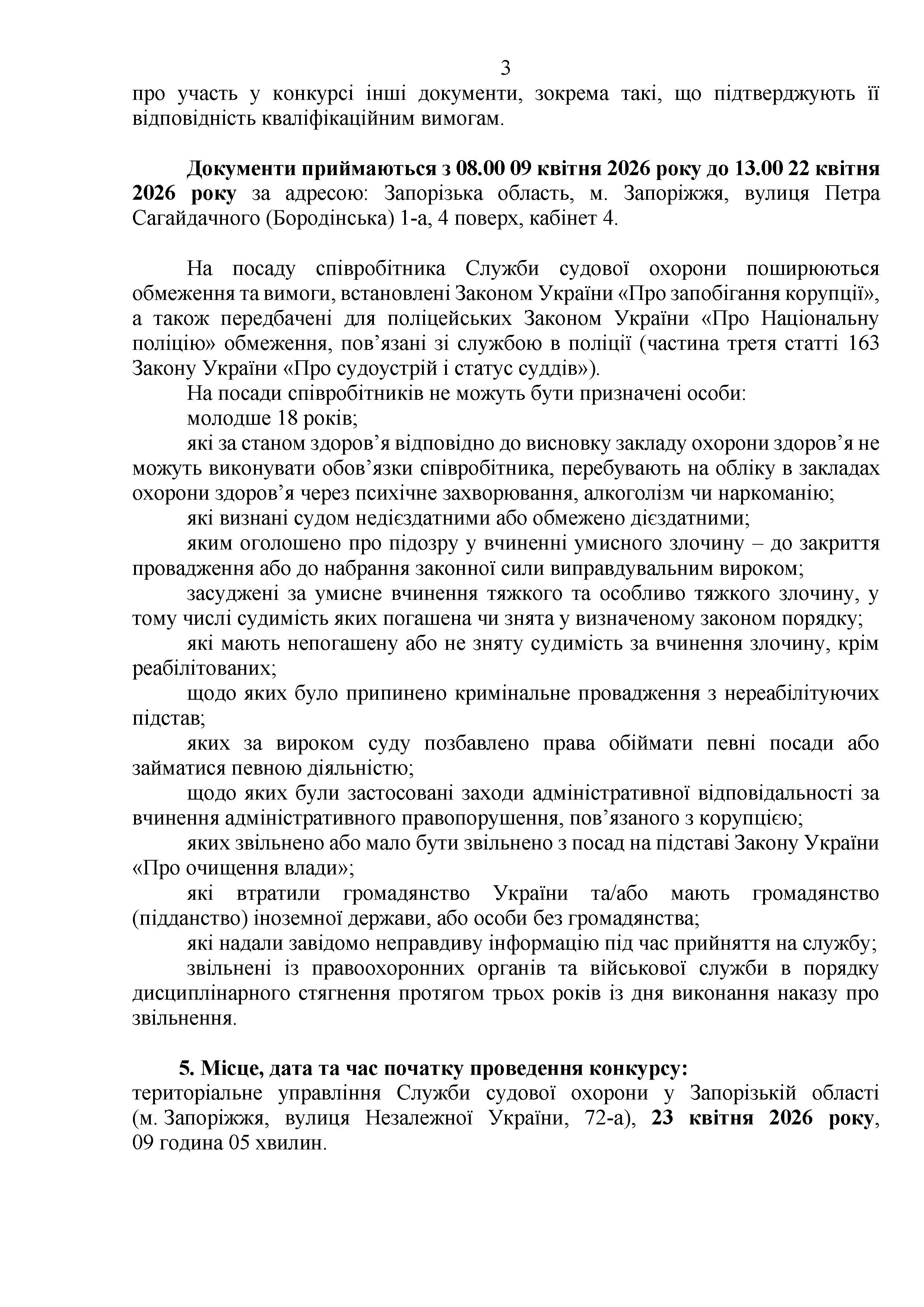 Конкурс на заміщення вакантних посад в територіальному управлінні Служби судової охорони у Запорізькій області