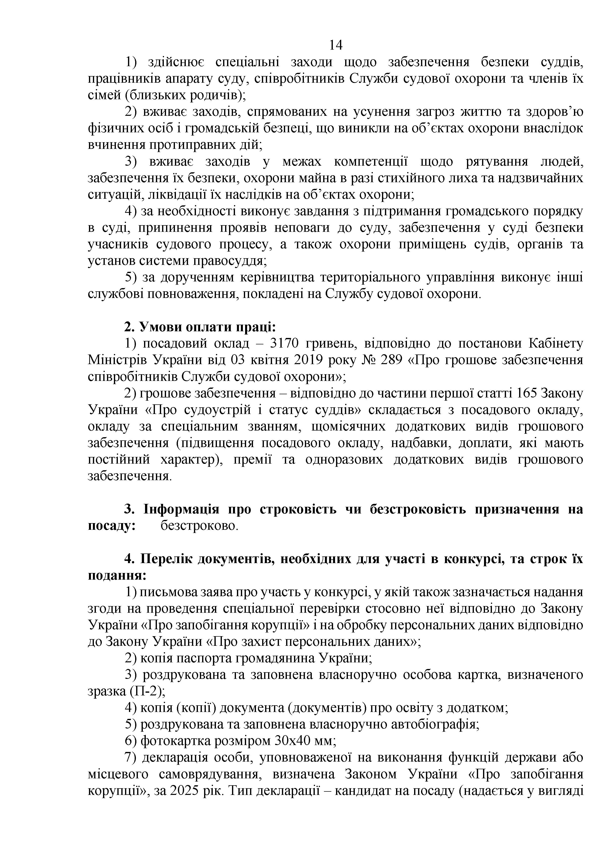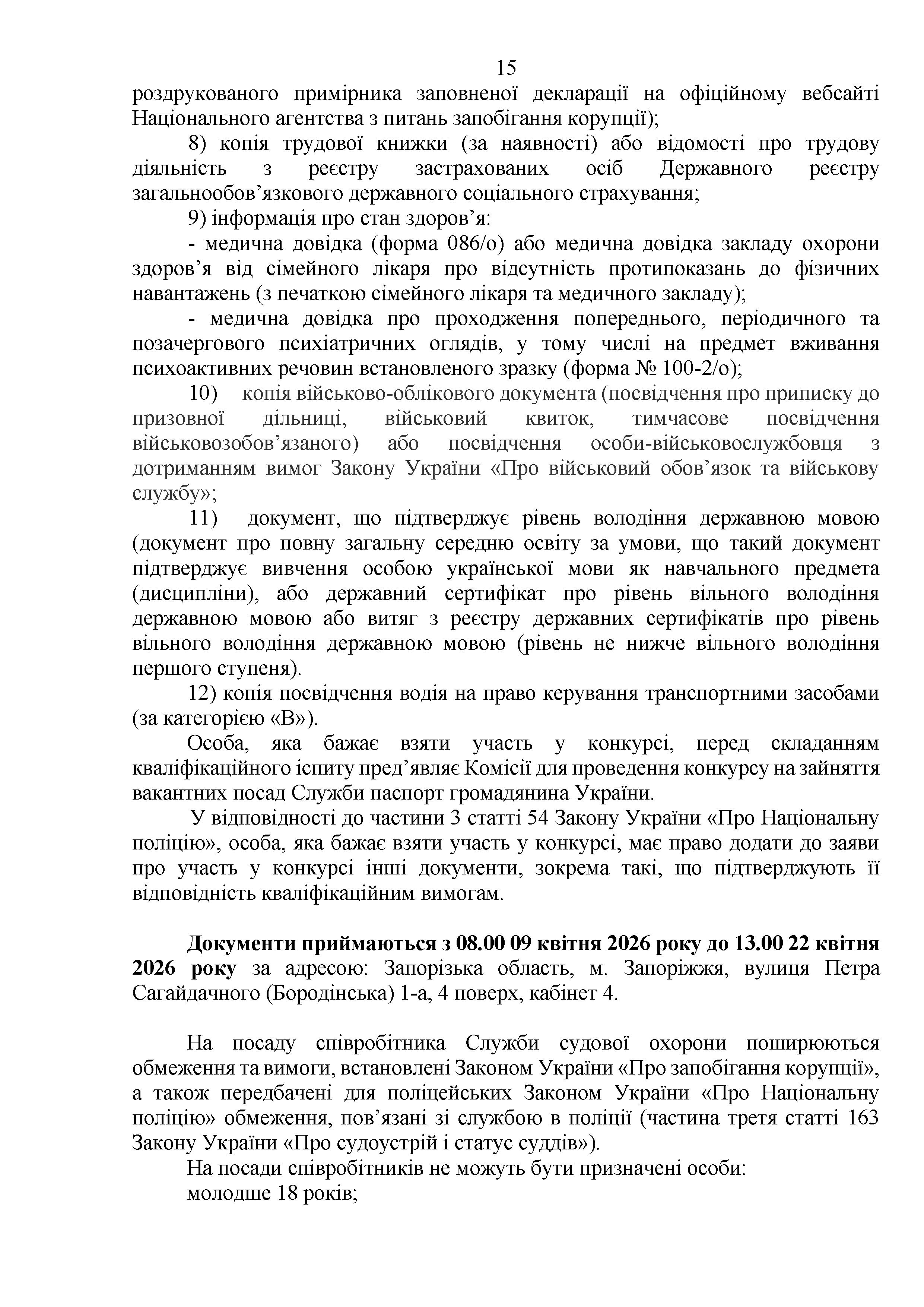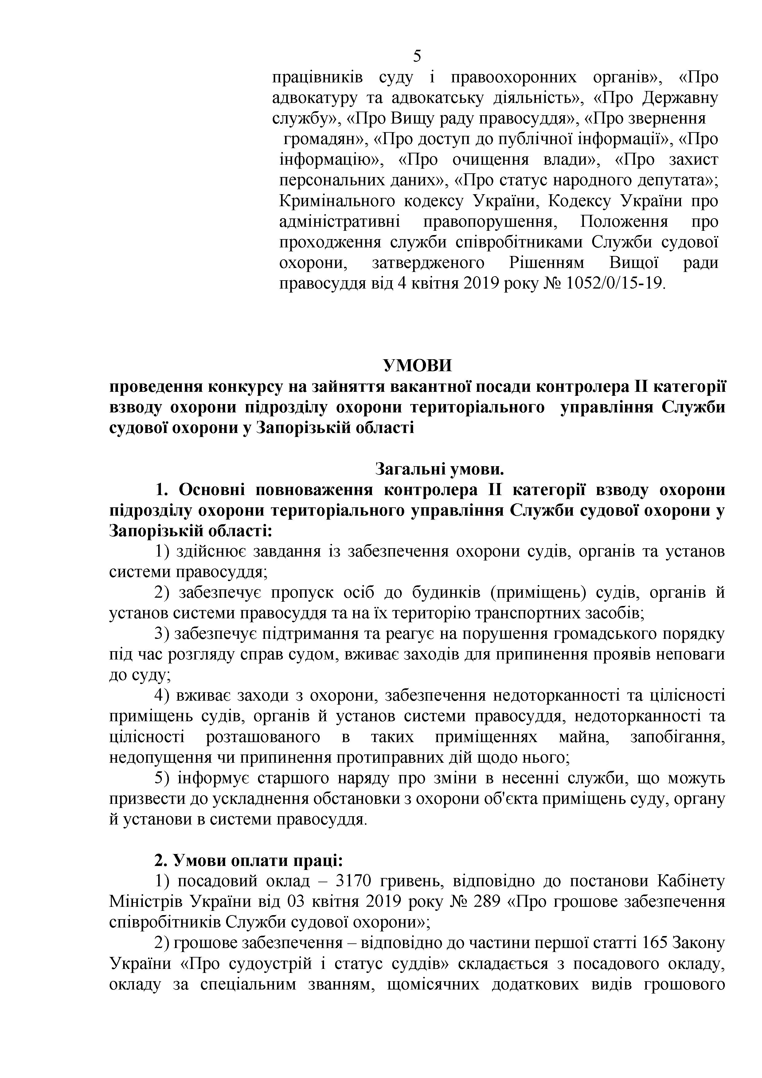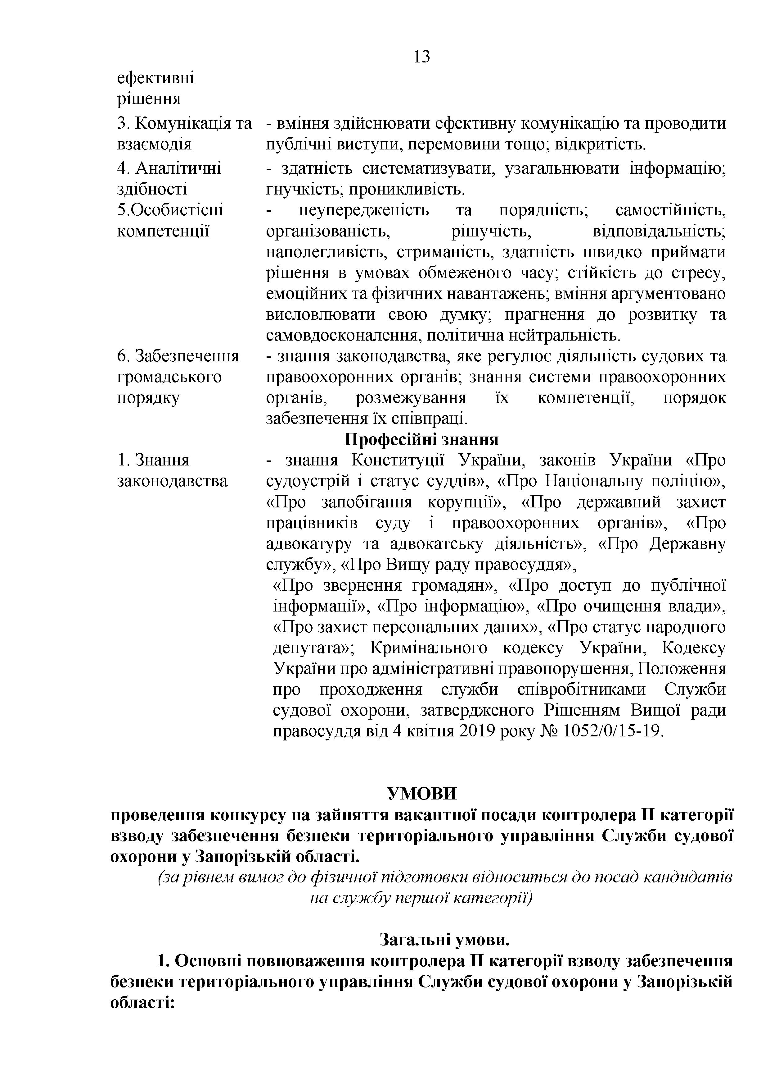 Конкурс на заміщення вакантних посад в територіальному управлінні Служби судової охорони у Запорізькій області
