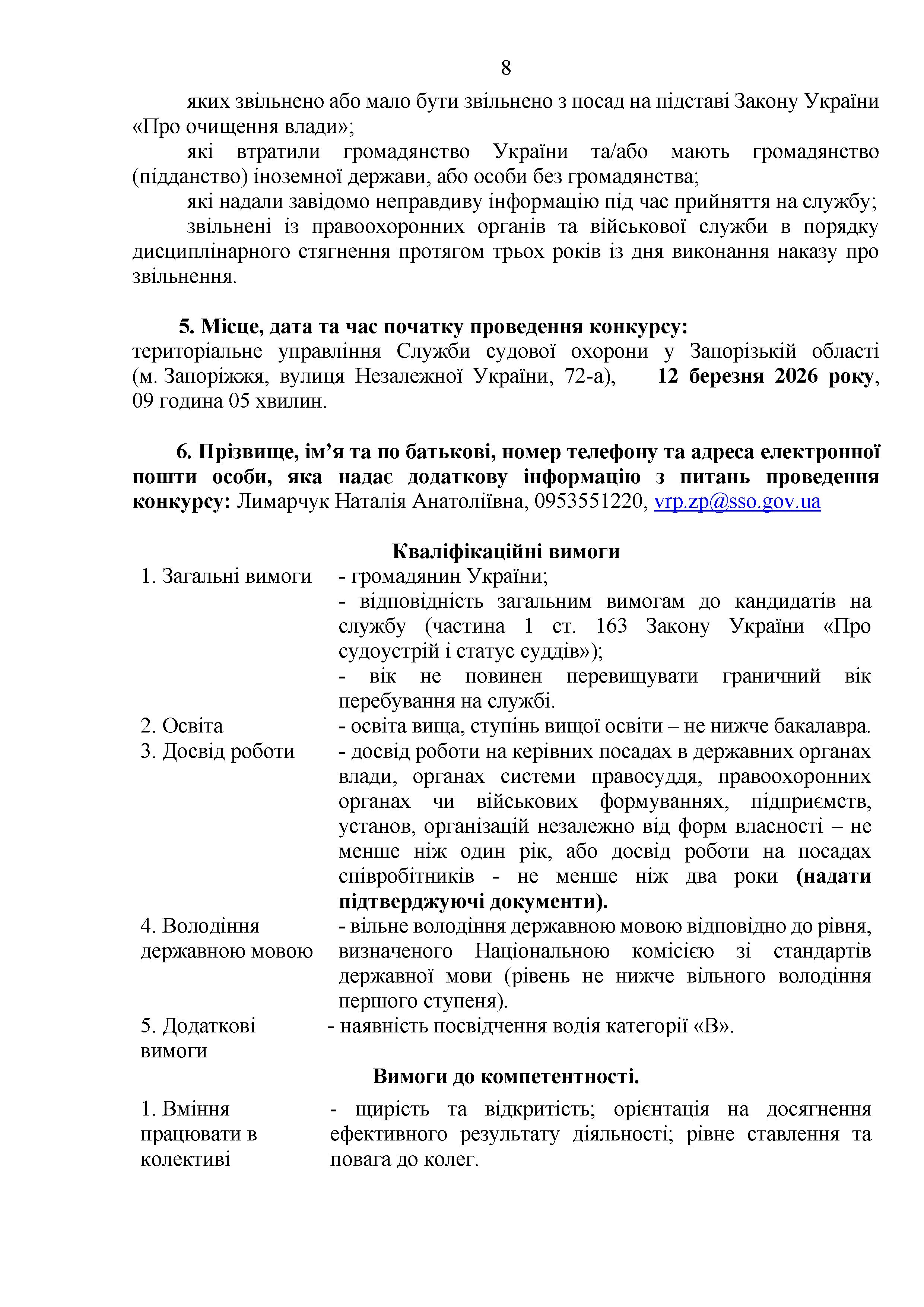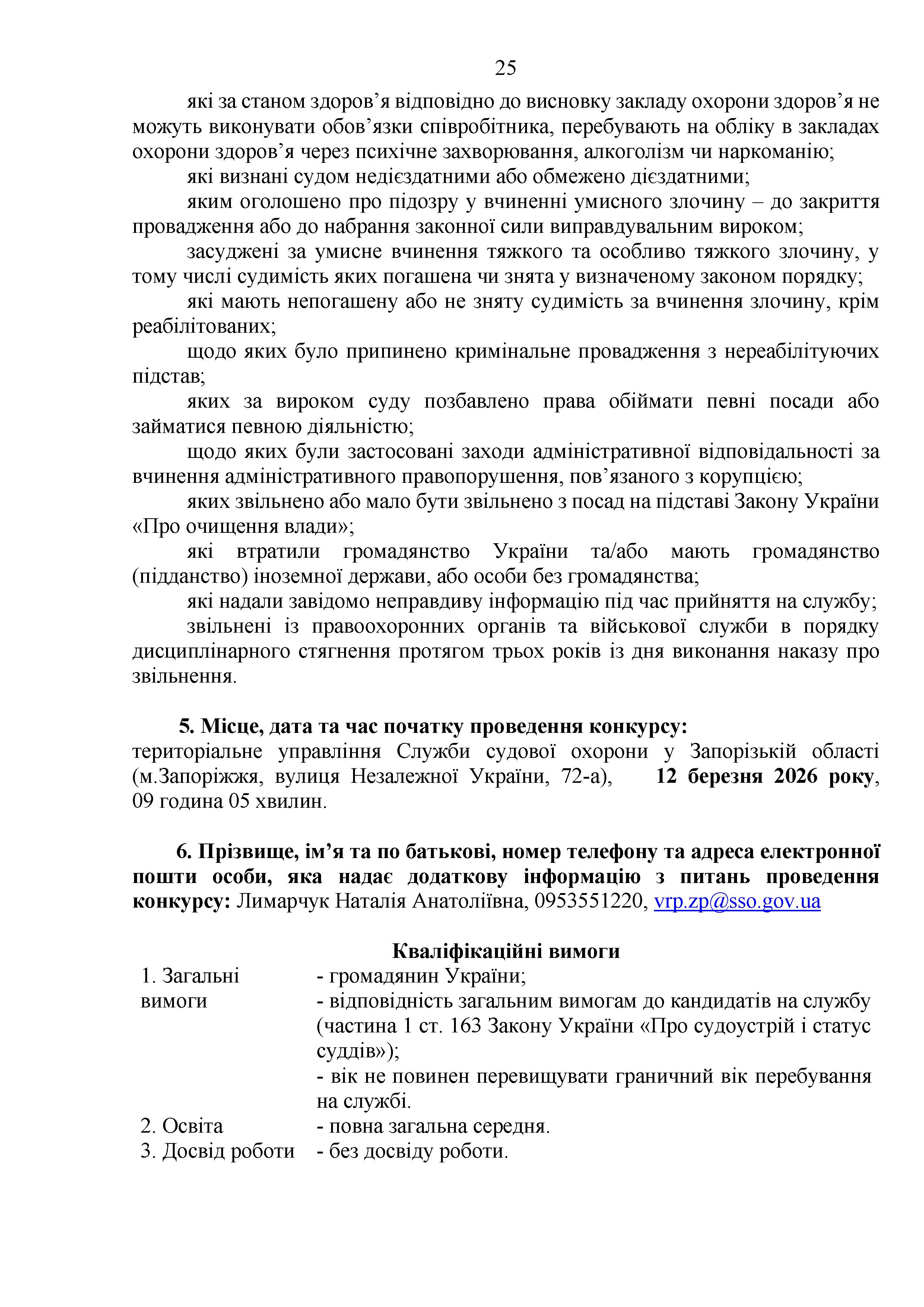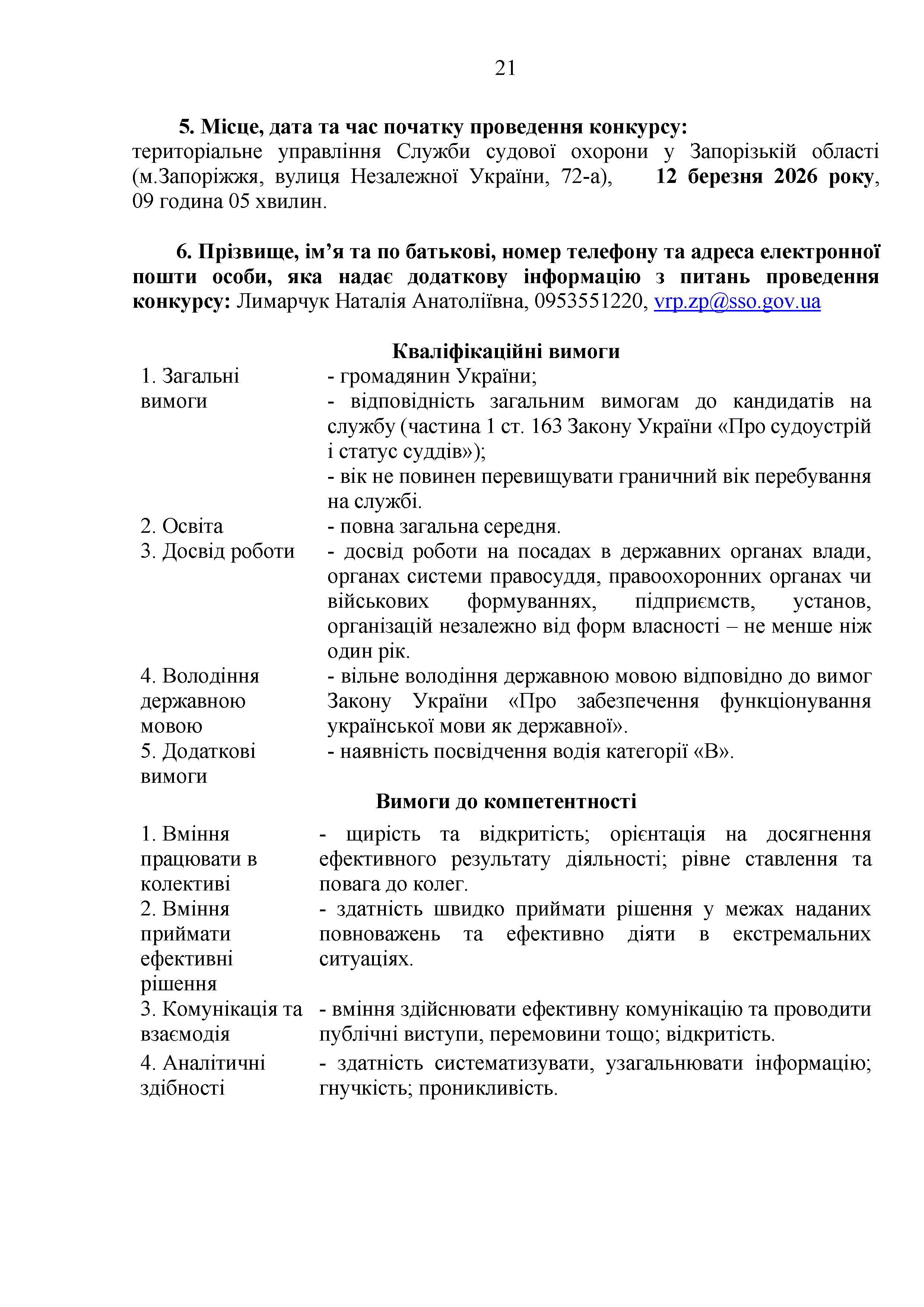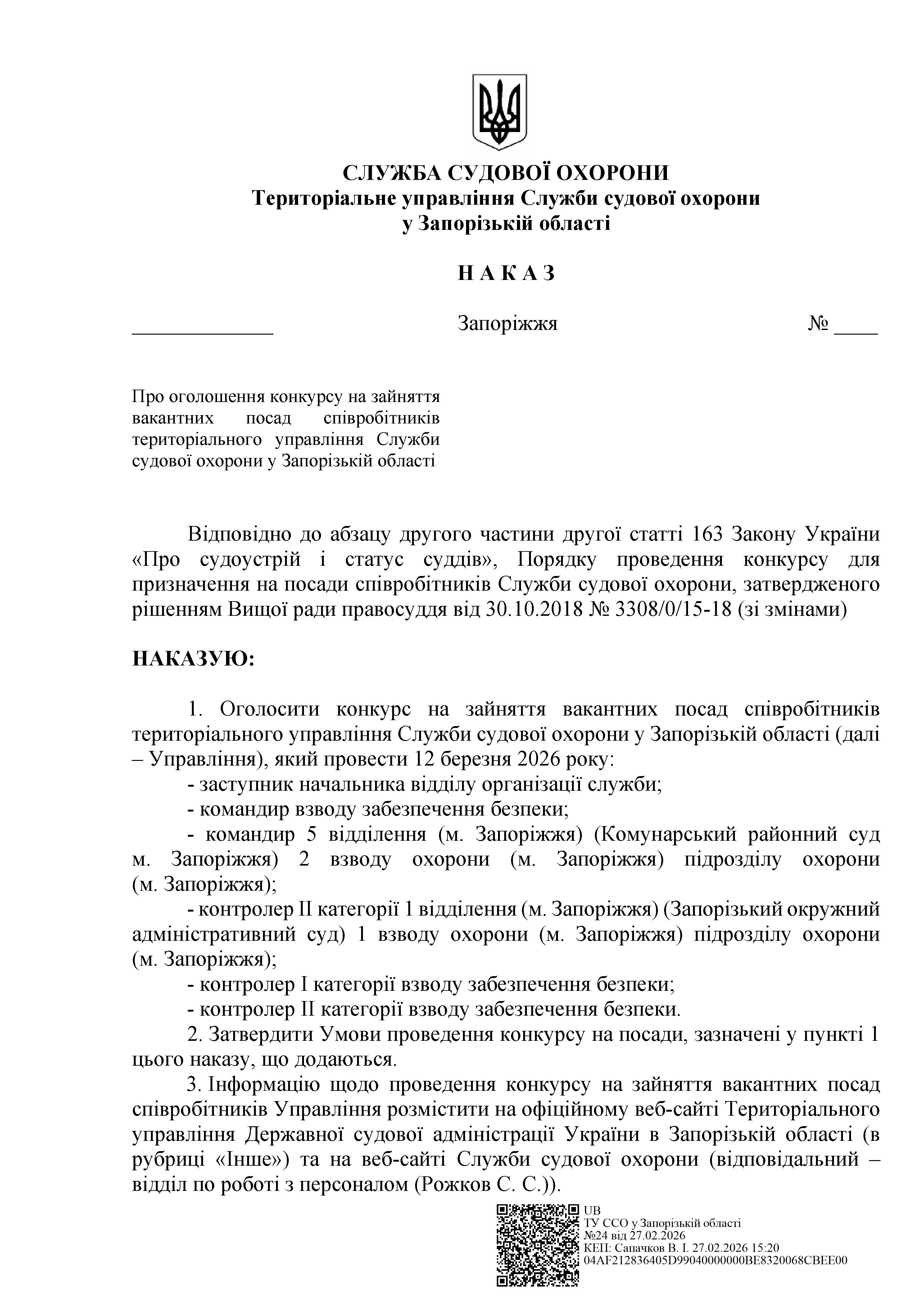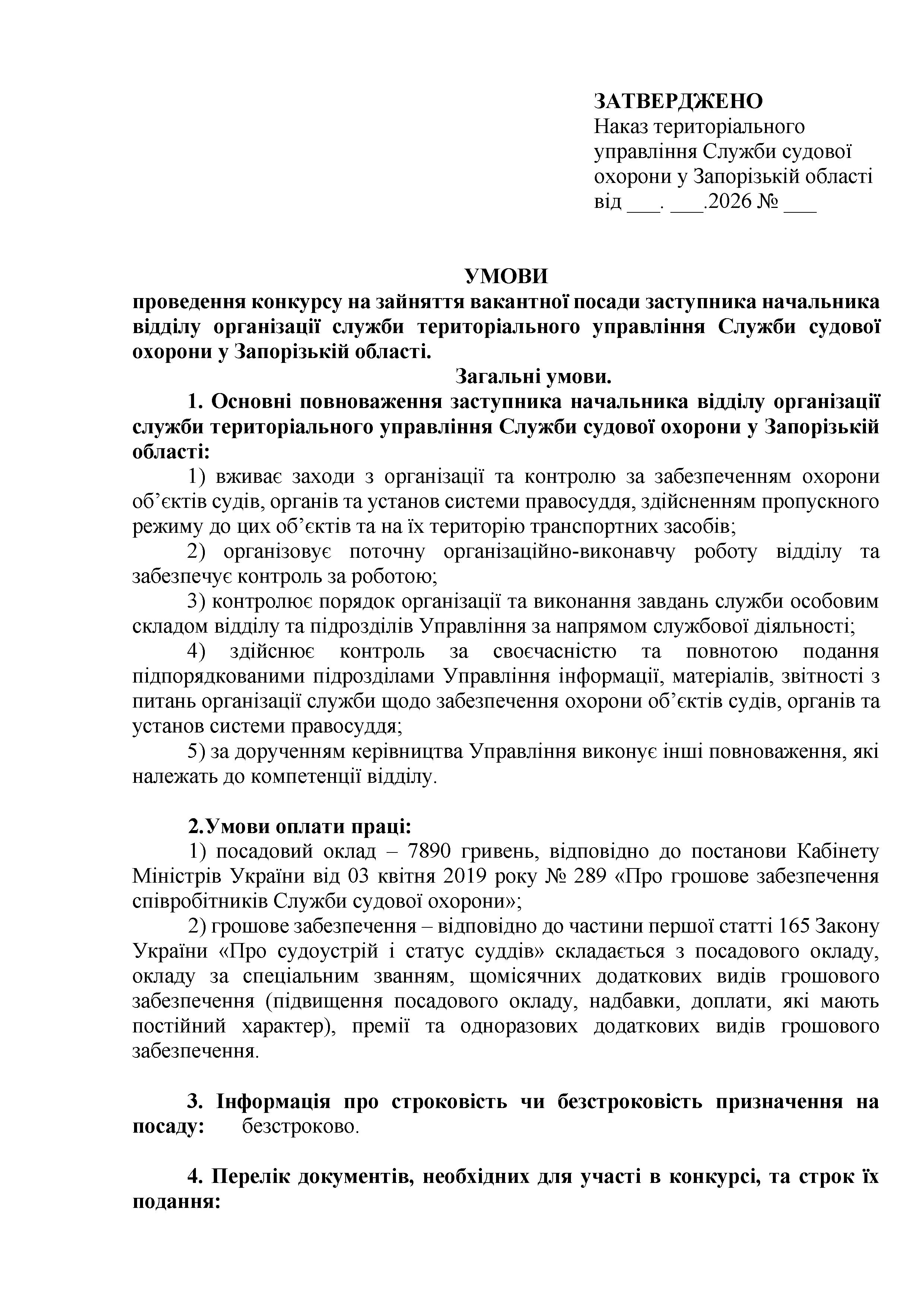 Конкурс на заміщення вакантних посад в територіальному управлінні Служби судової охорони у Запорізькій області