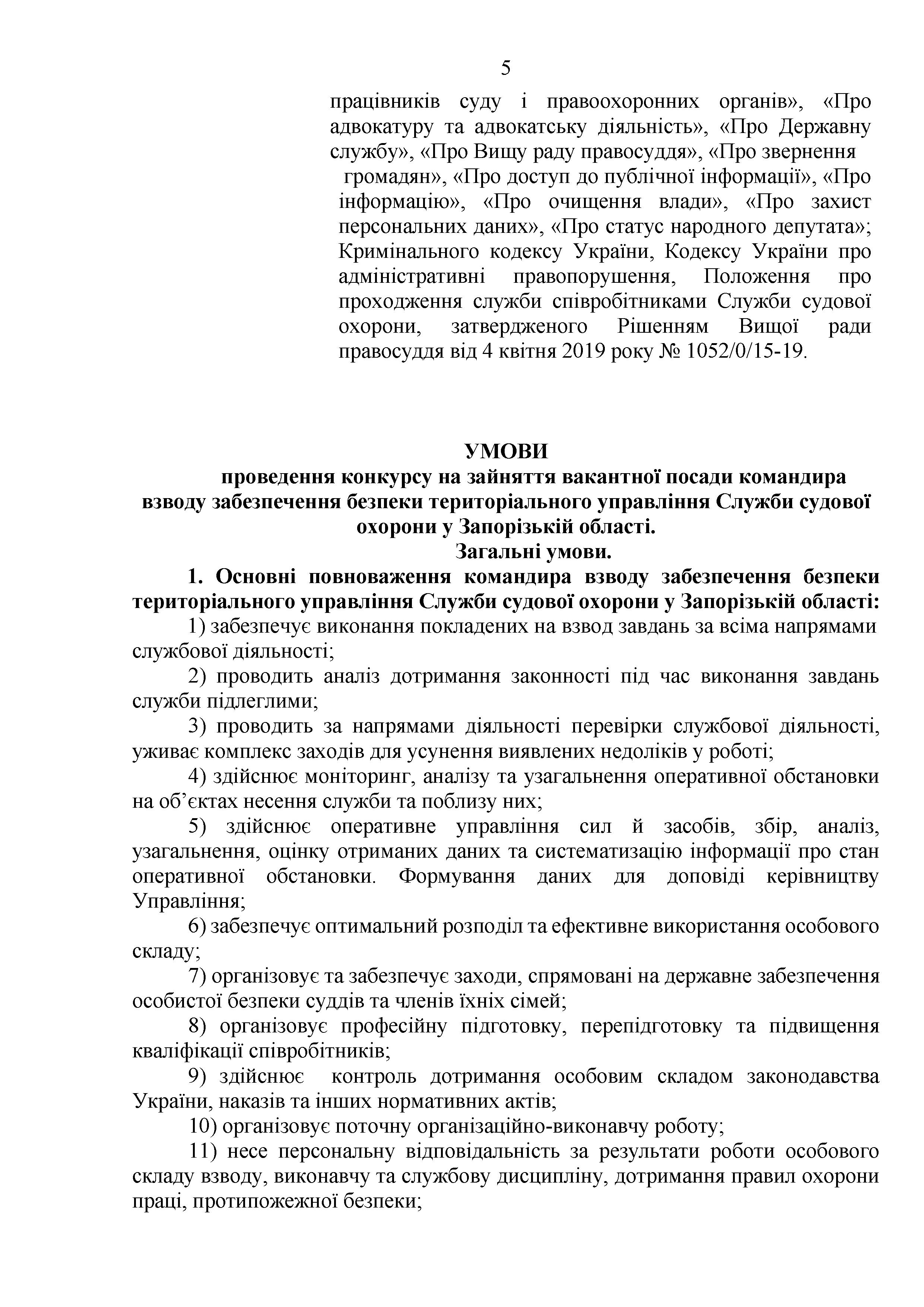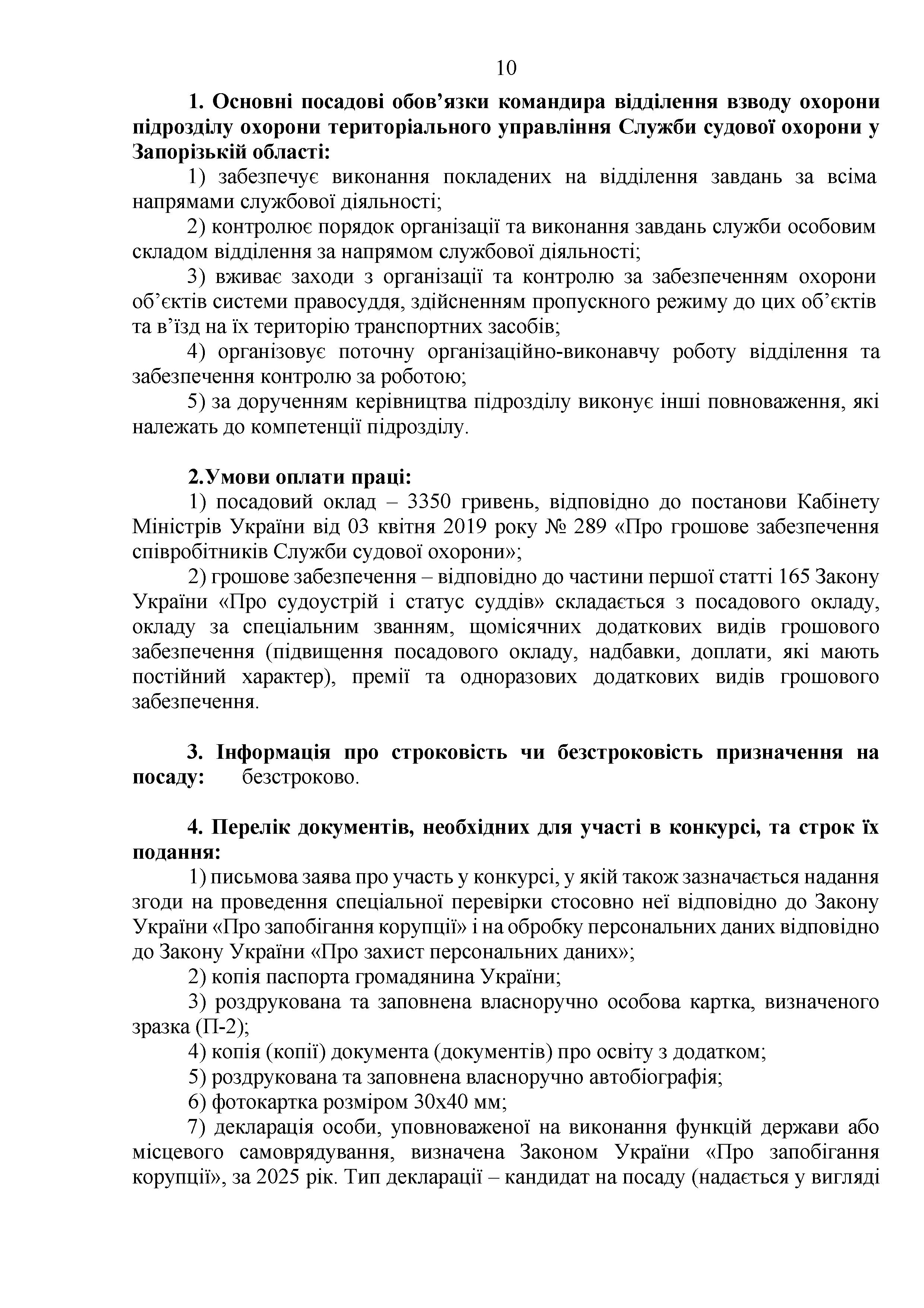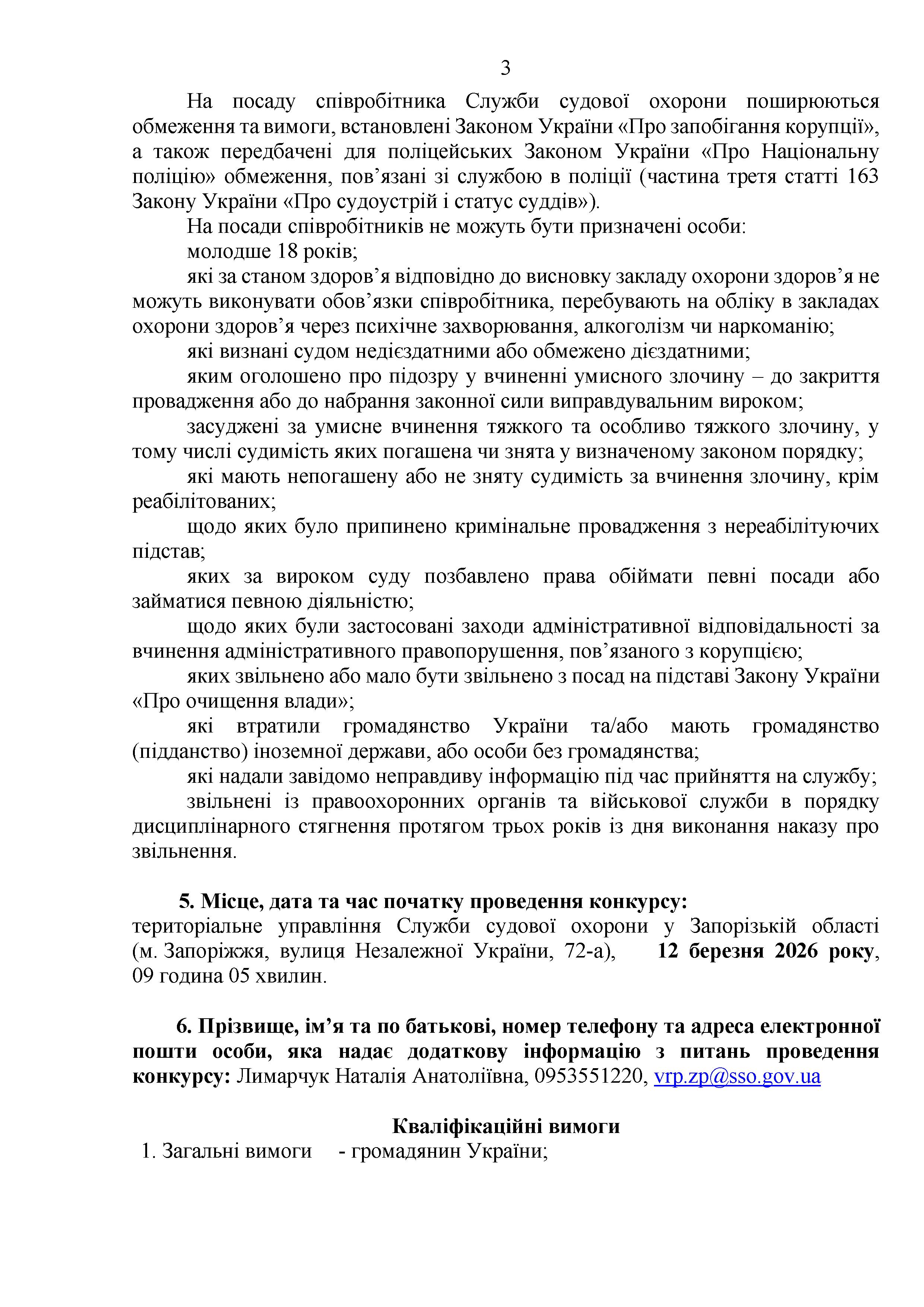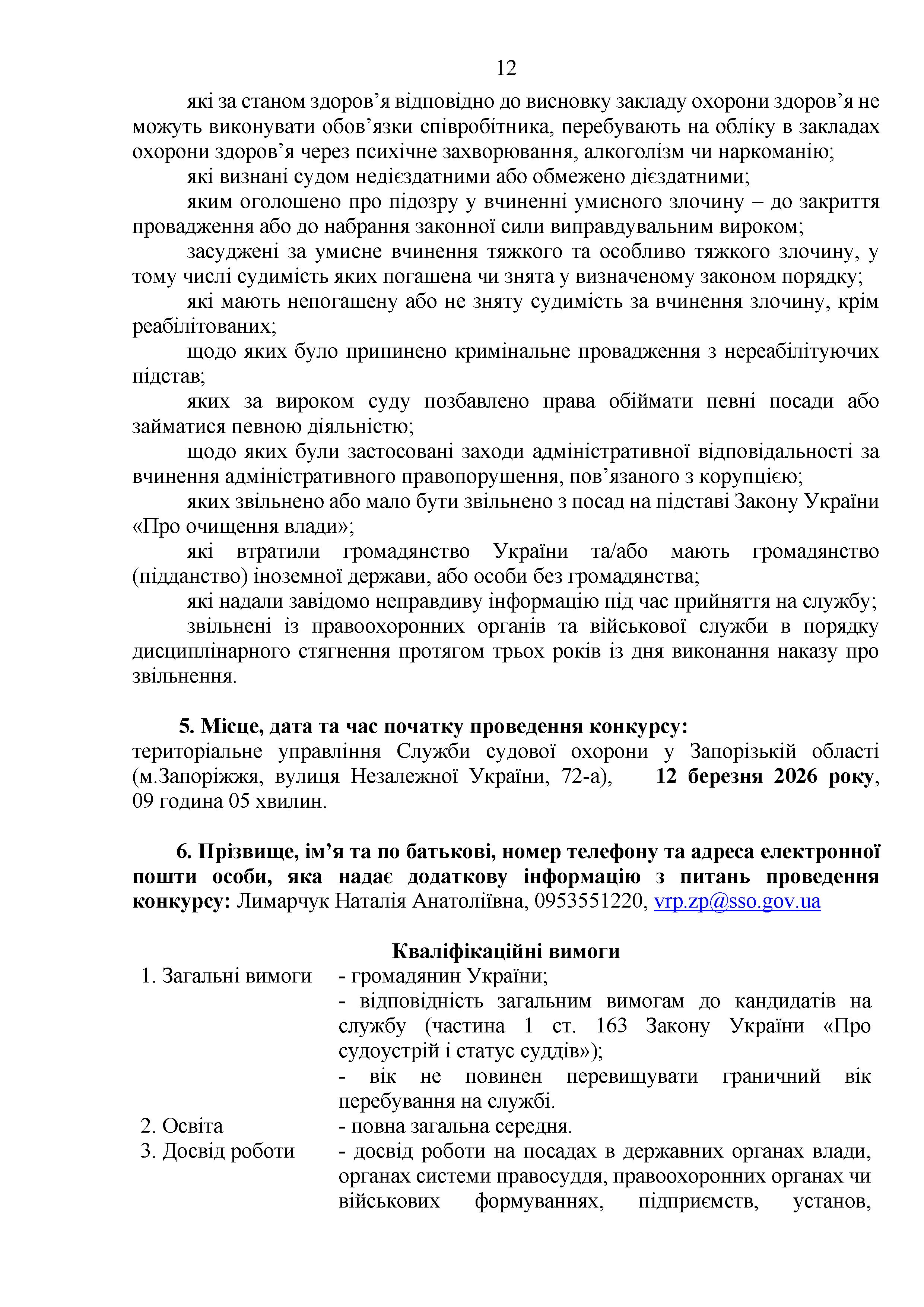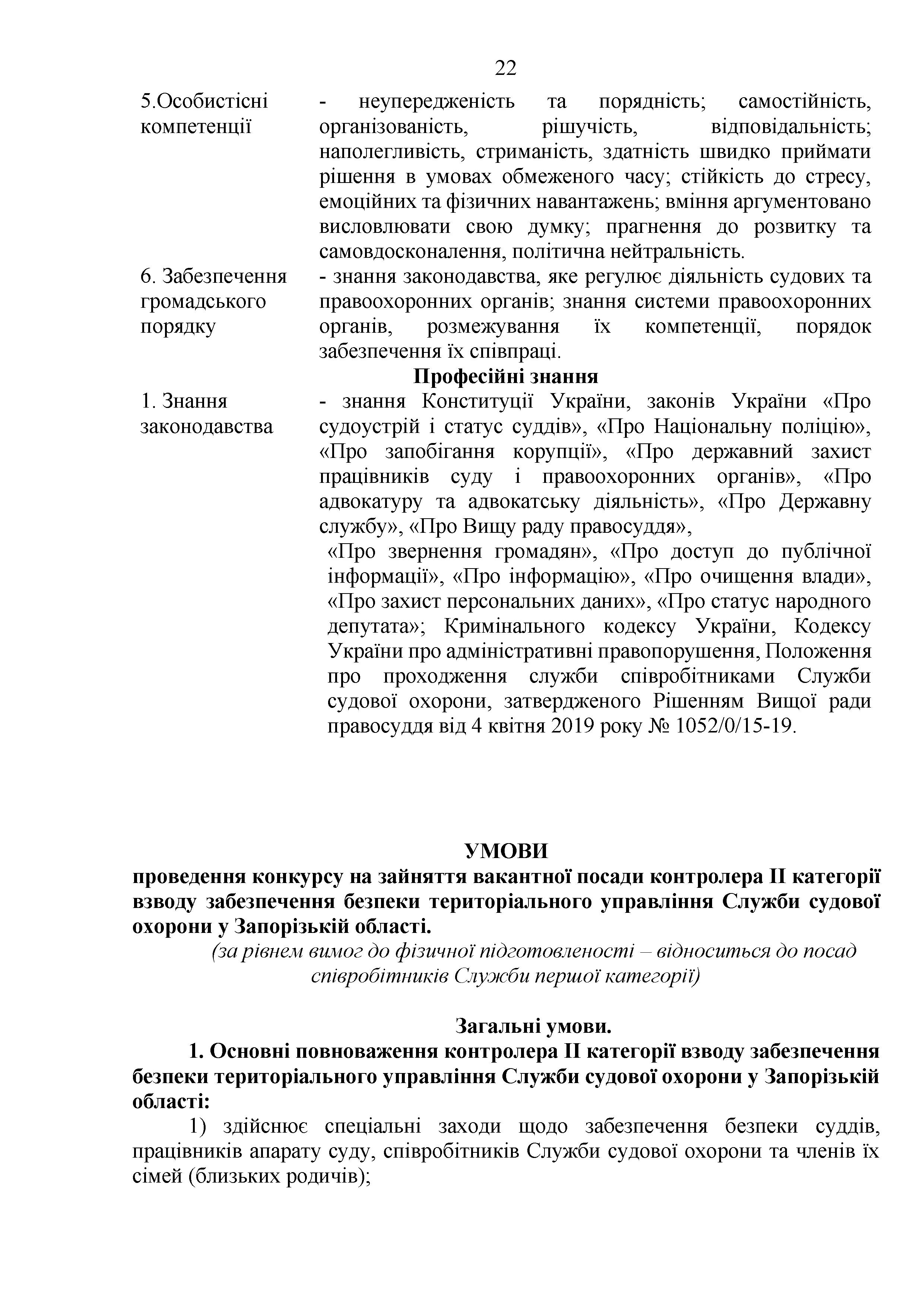 Конкурс на заміщення вакантних посад в територіальному управлінні Служби судової охорони у Запорізькій області