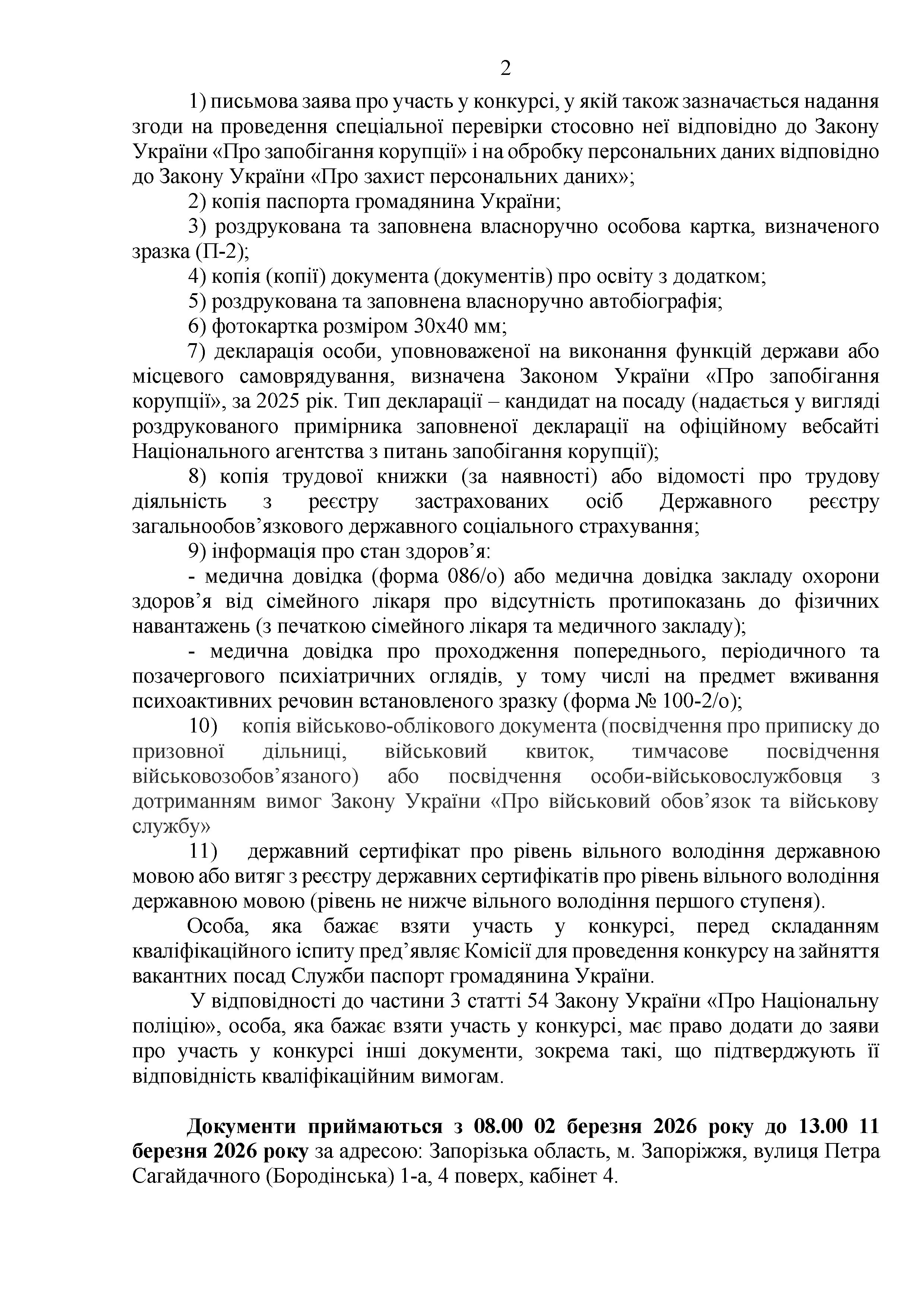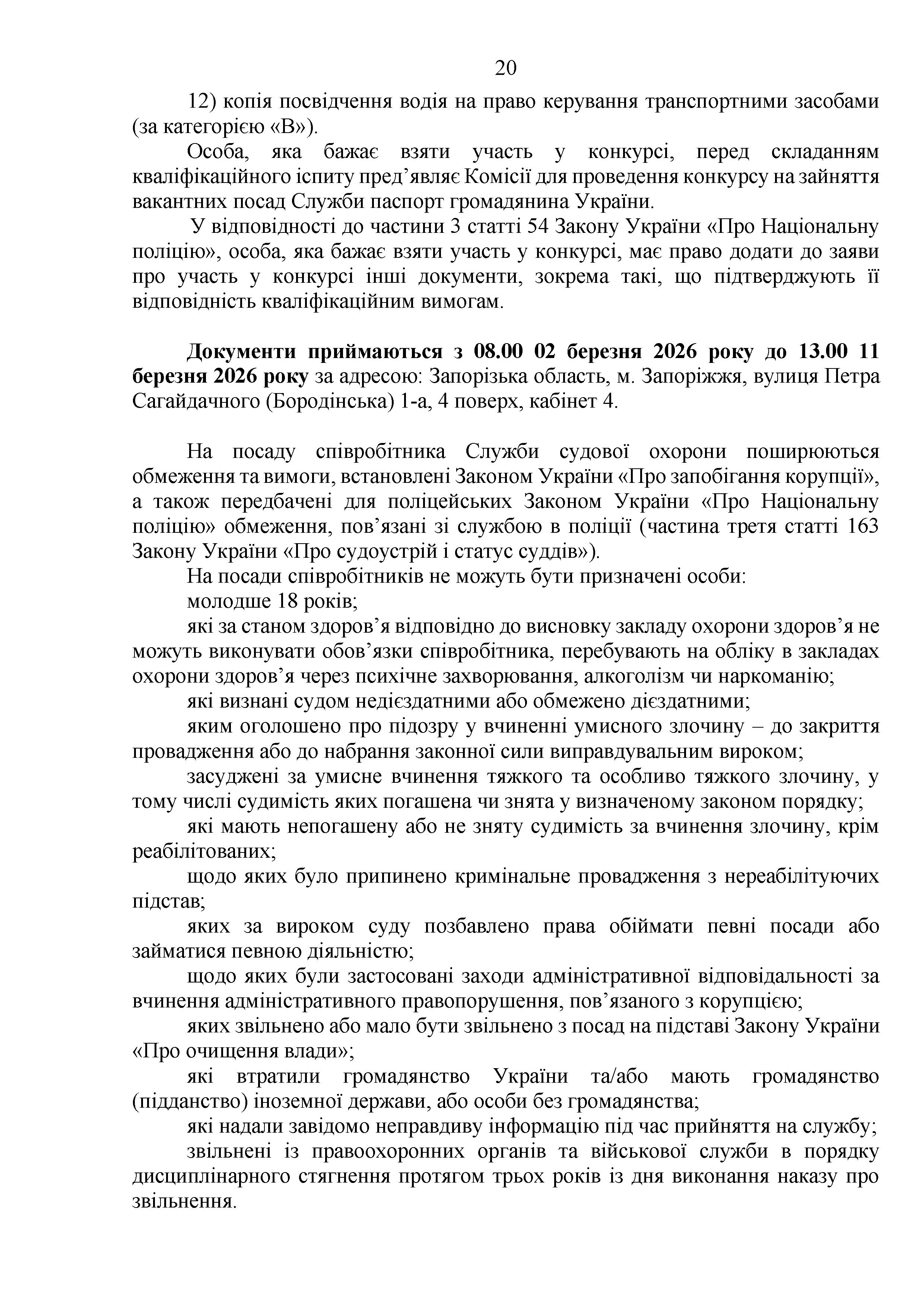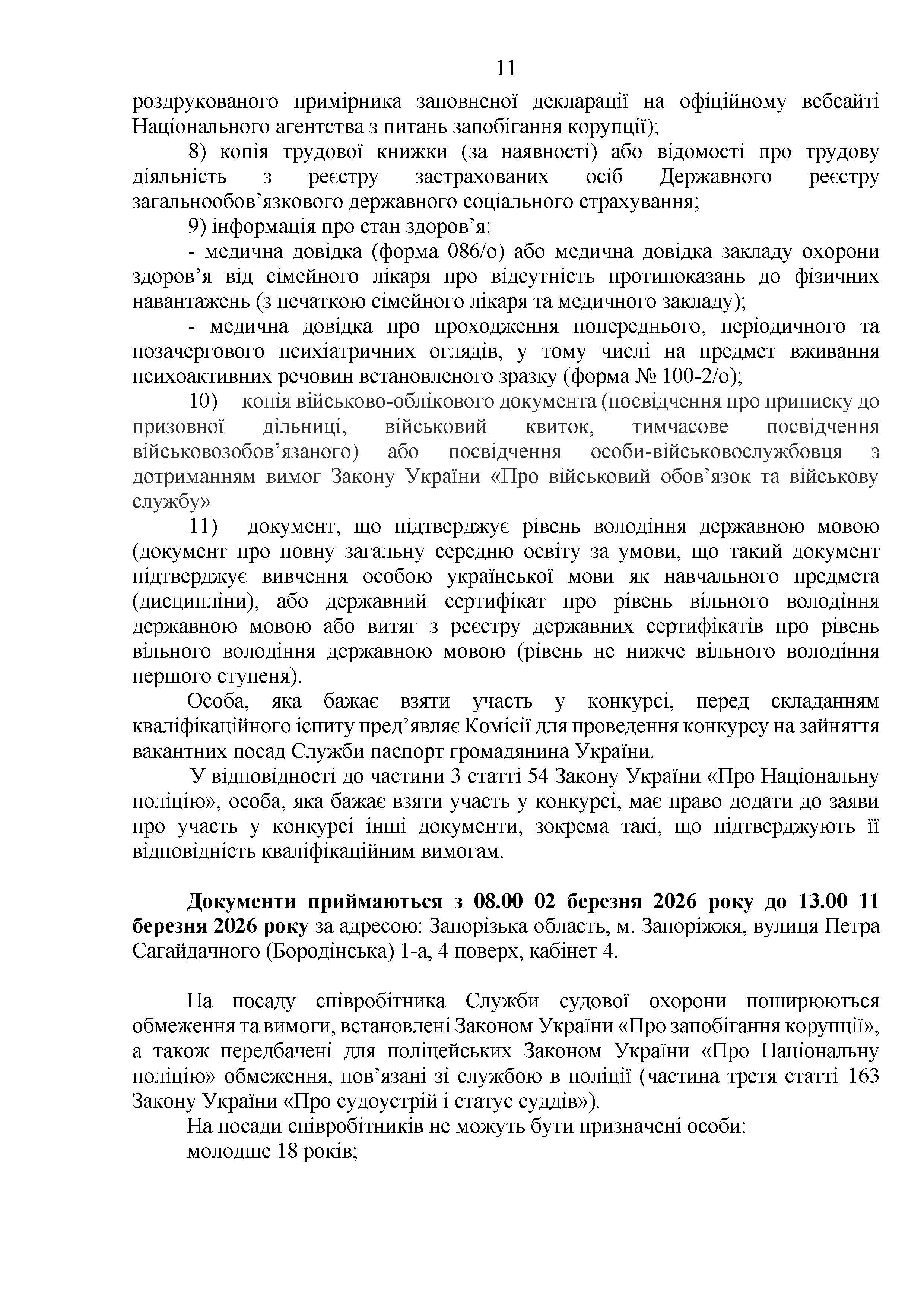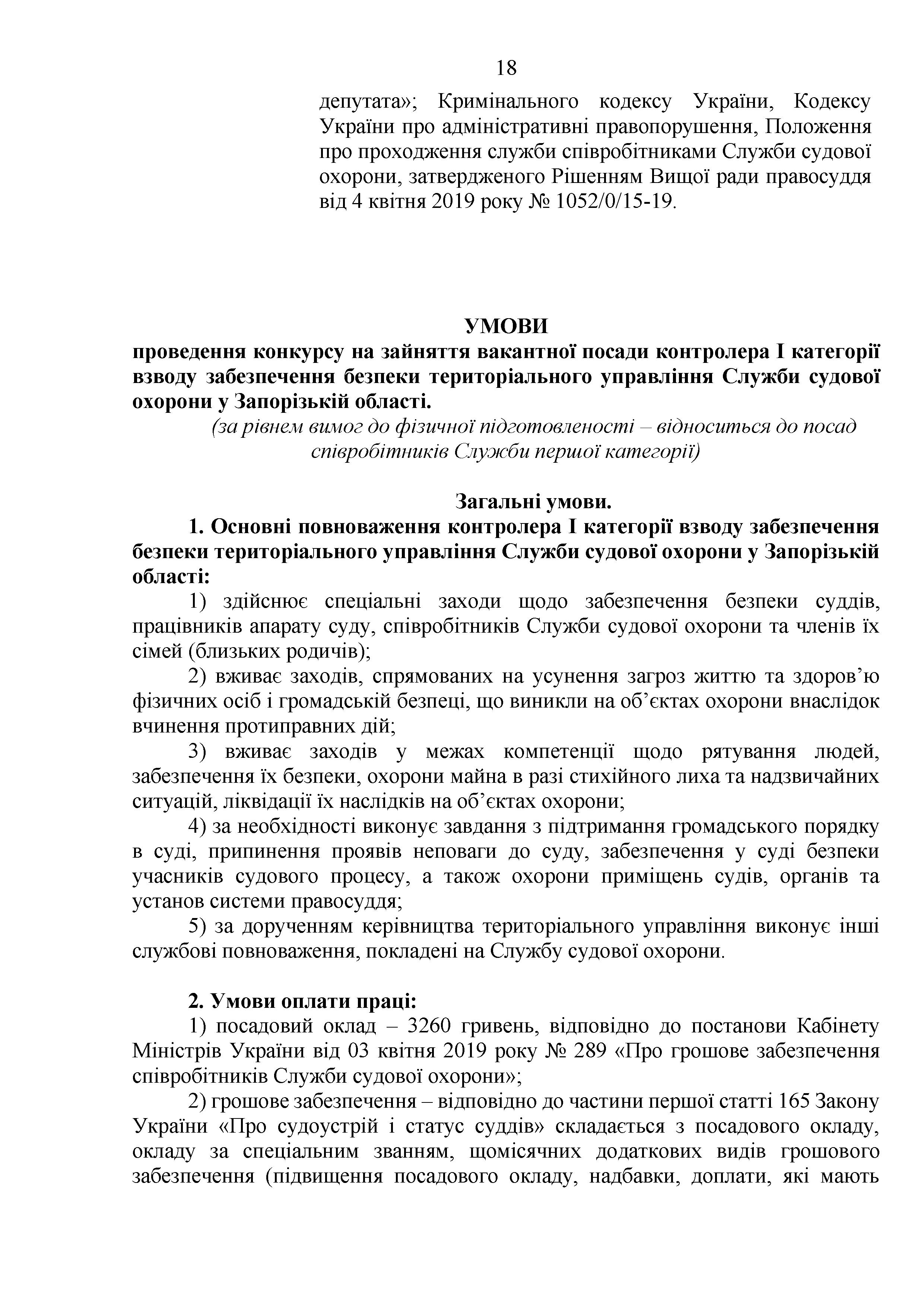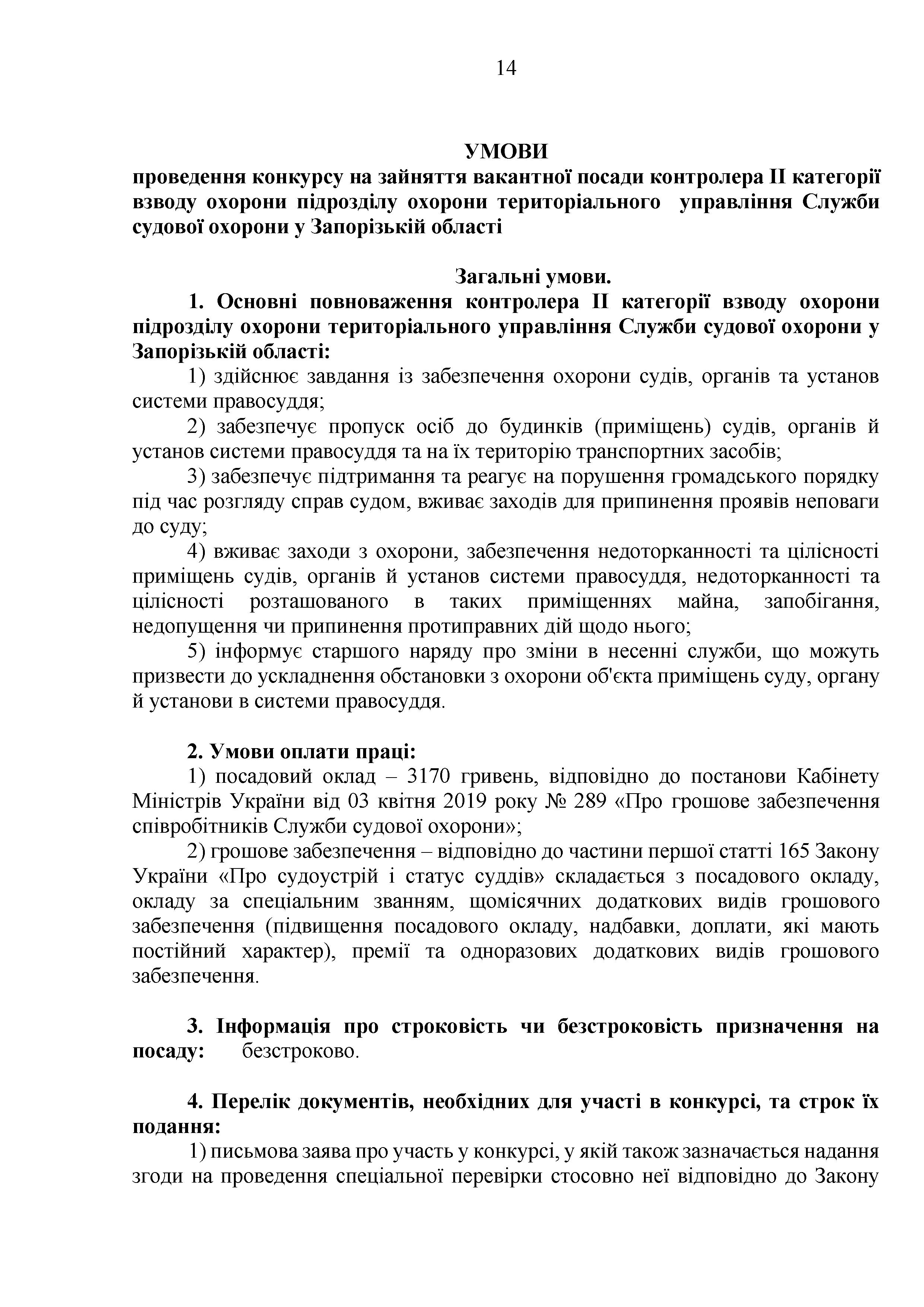 Конкурс на заміщення вакантних посад в територіальному управлінні Служби судової охорони у Запорізькій області
