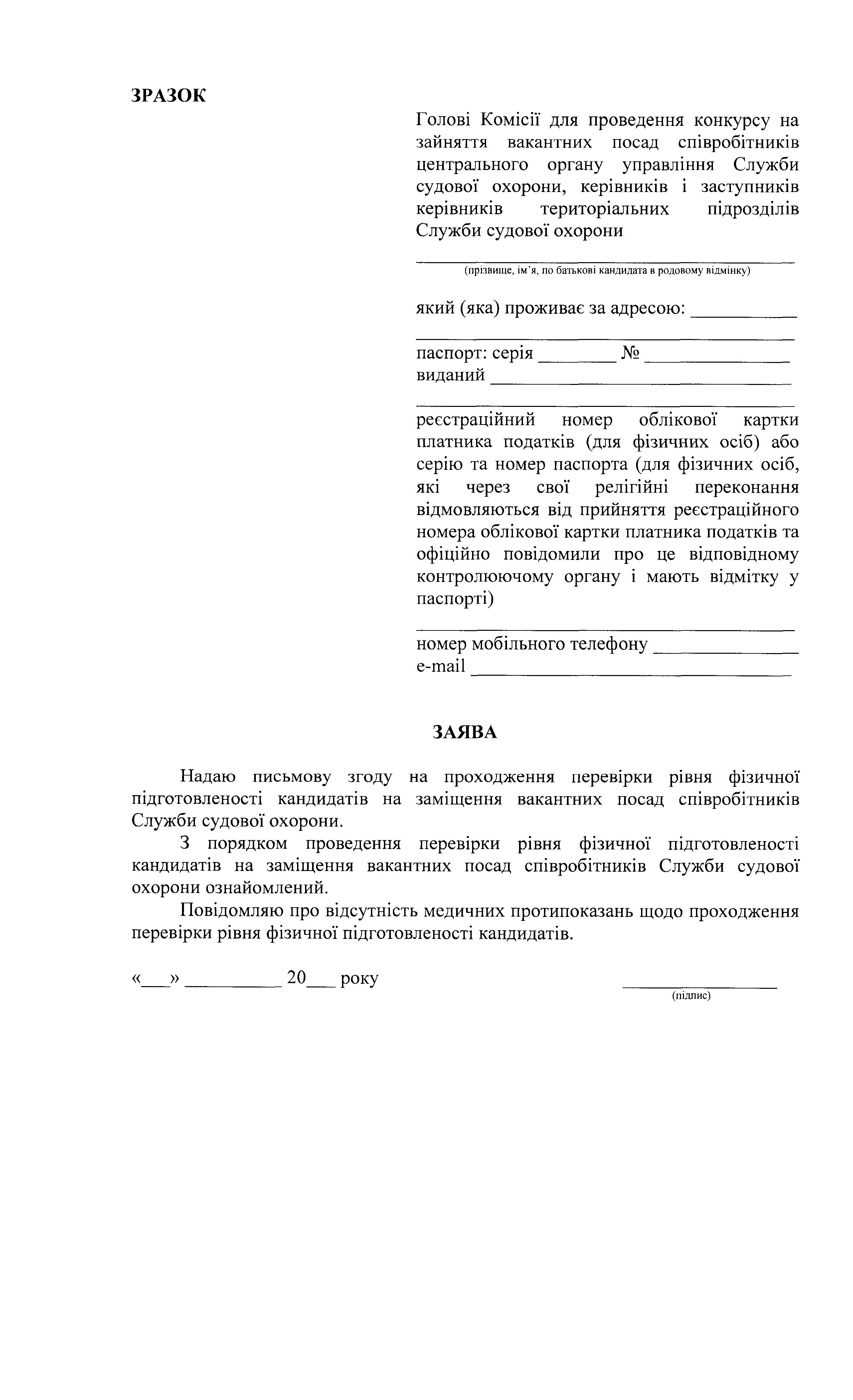 Конкурс на заміщення вакантних посад в територіальному управлінні Служби судової охорони у Запорізькій області